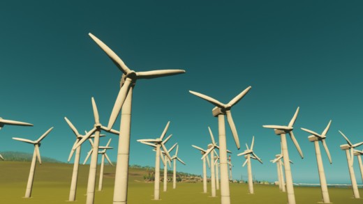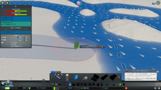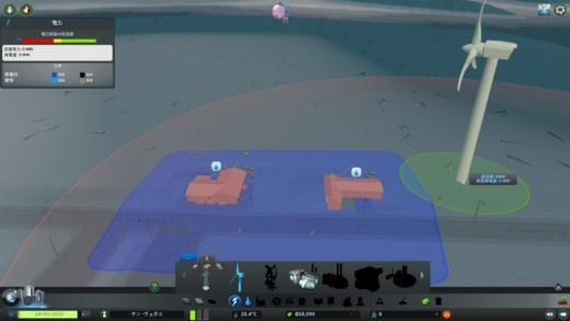 風速画面から濃い色のところに建設すると発電量が大きくなる