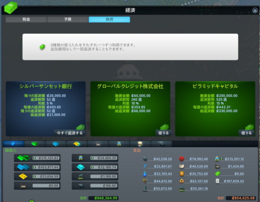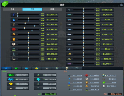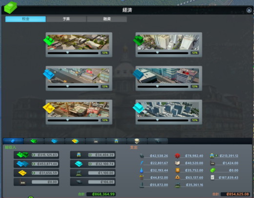 右下の財政ボタンから税率を設定したり