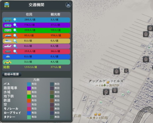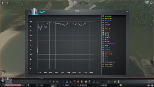統計ではこれまでの都市の細かい情報をグラフで確認できる