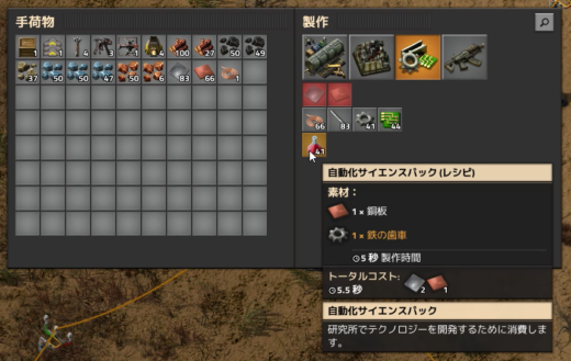 赤サイエンスパック10個で開発できるので、資材を集めてあらかじめ研究しておこう